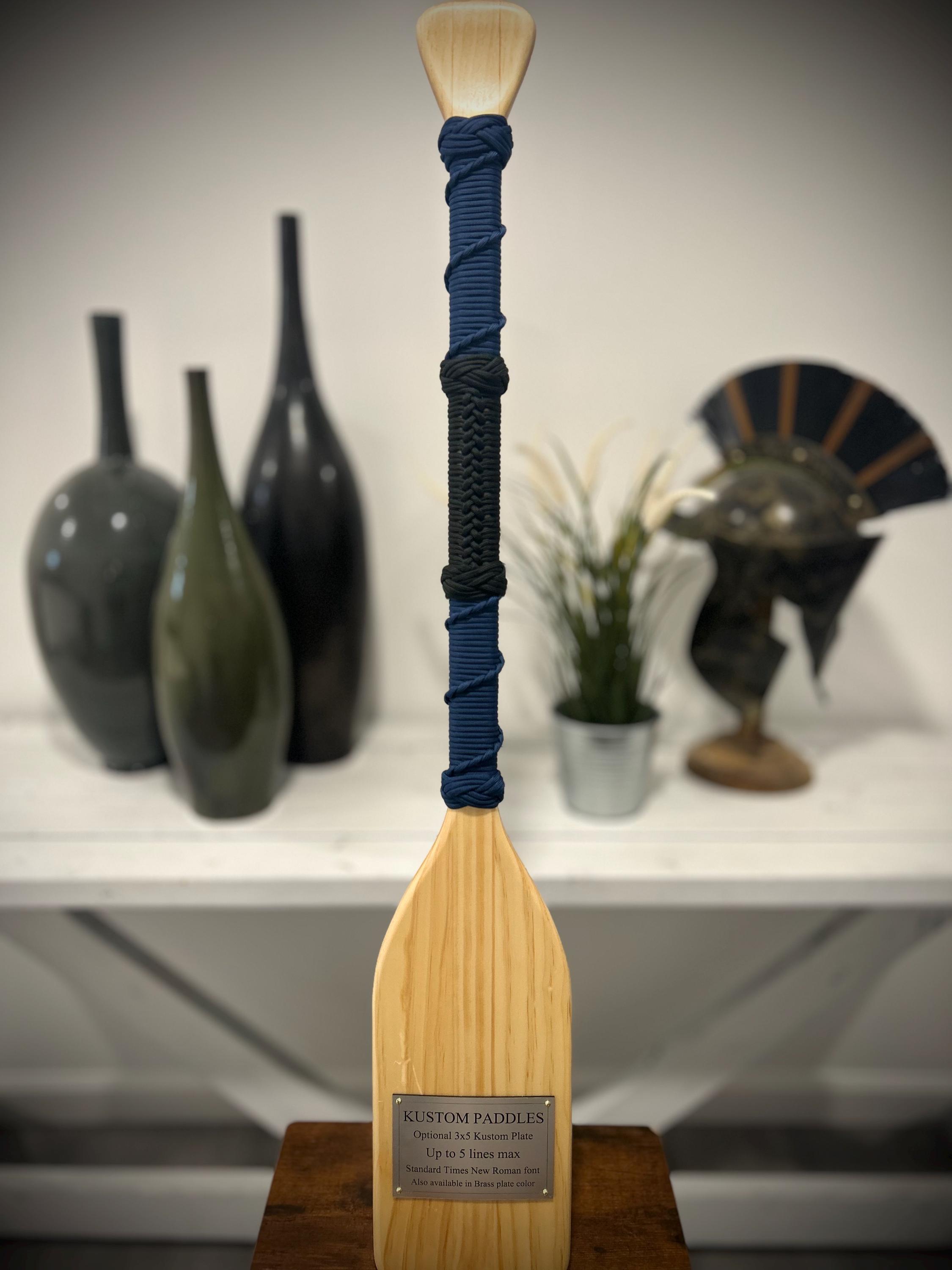USCG Working uniform color wrapped over 36" paddle. A perfect gift for any occasion to express one for their significant accomplishments, end-of-tour, graduation, retirement, remembrance, or simply just saying thanks. Designed to commemorate their dedication, sacrifice, and commitment to protecting others, this paddle is a heartfelt symbol of gratitude and a lasting memento that honors the valor and service of these everyday heroes. Or treat yourself one to show others you proudly served. Idea for self mounting ribbon, medal, coin, or warfare designation pins with your own style of decoration. These are made to order and every paddle is carefully hand wrapped with loop hangers on the back for optional wall hanging display. Optional laser engraved 4" USCG Logo (center of the blade) with RANK (top handle), or send your own file to Kustompaddles [!at] gmail.com for customized engraving. Optional 3"x5" plastic engraved PLATE with your own inscription in standard Times New Roman font, up to 6 lines, upon check out. Optional Paddle bag to help conceal and reveal to recipients also available.